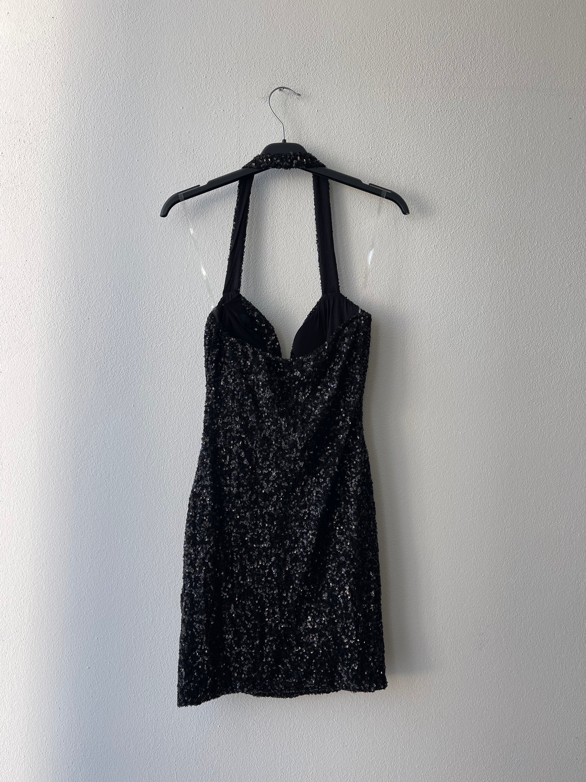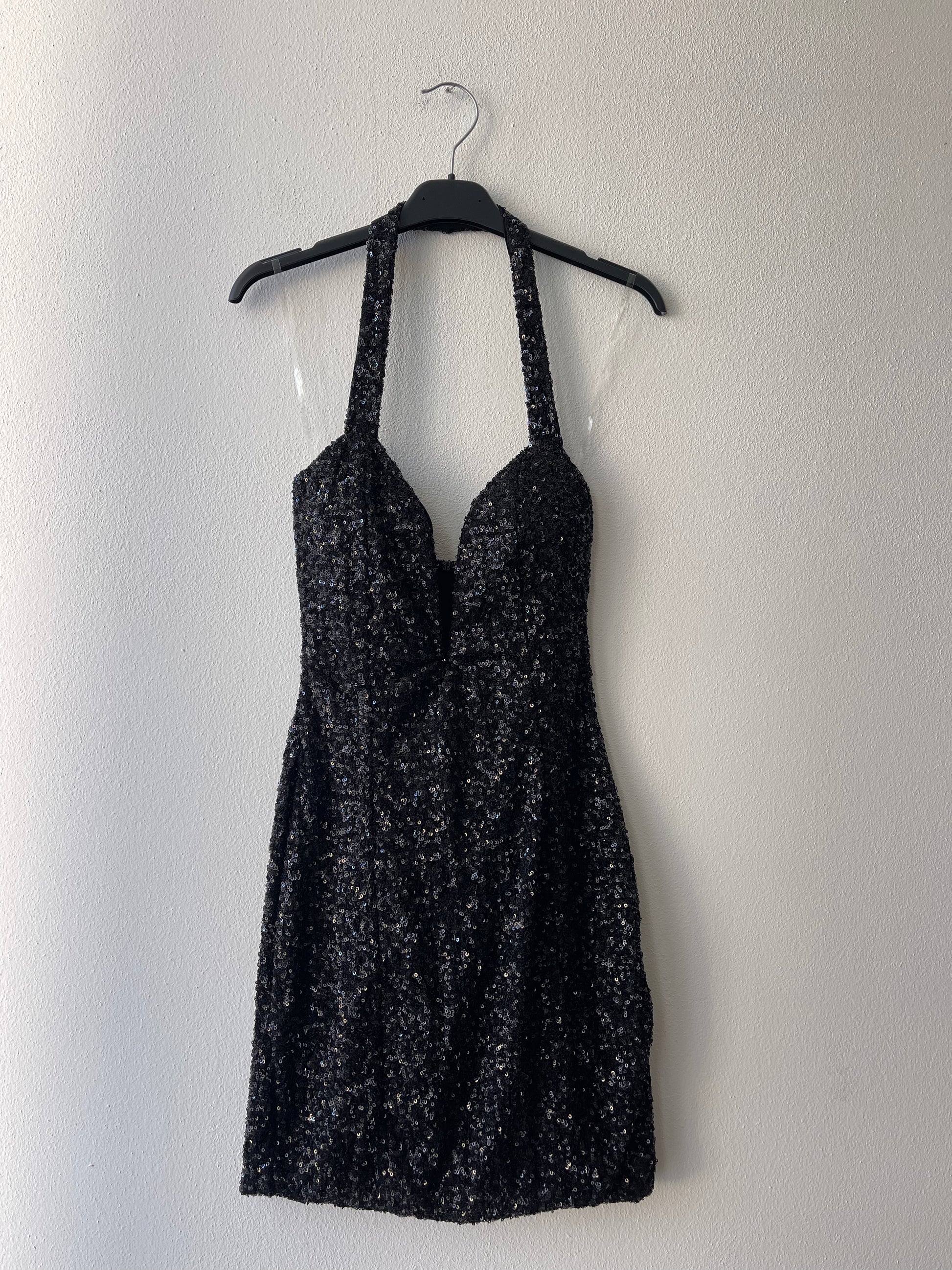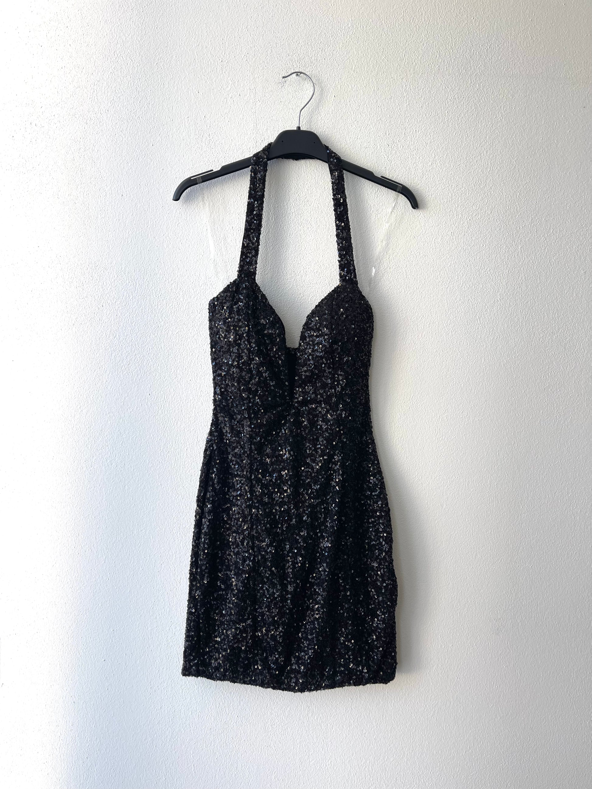 abito taglia unica con scollo importante e anima in ferro con allacciatura dietro dietro la nuca