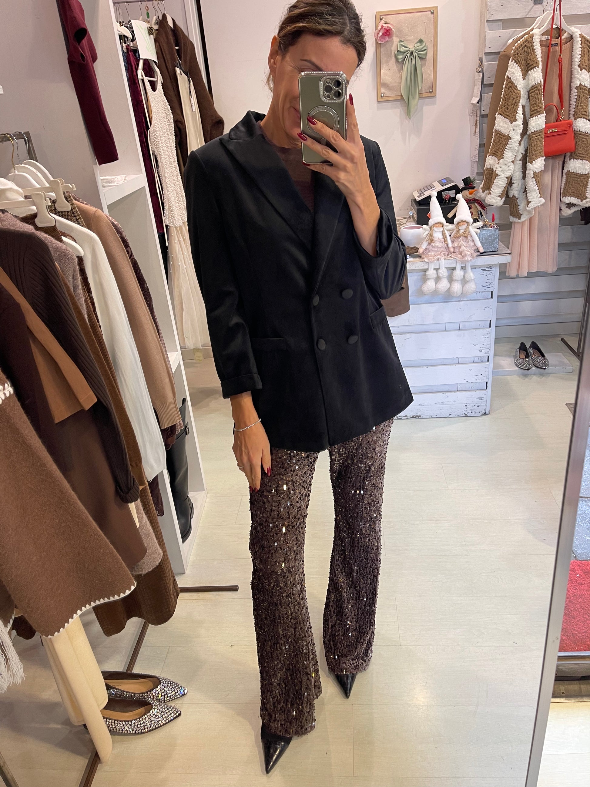 Blazer in velluto con abbottonatura doppia manica risvolto