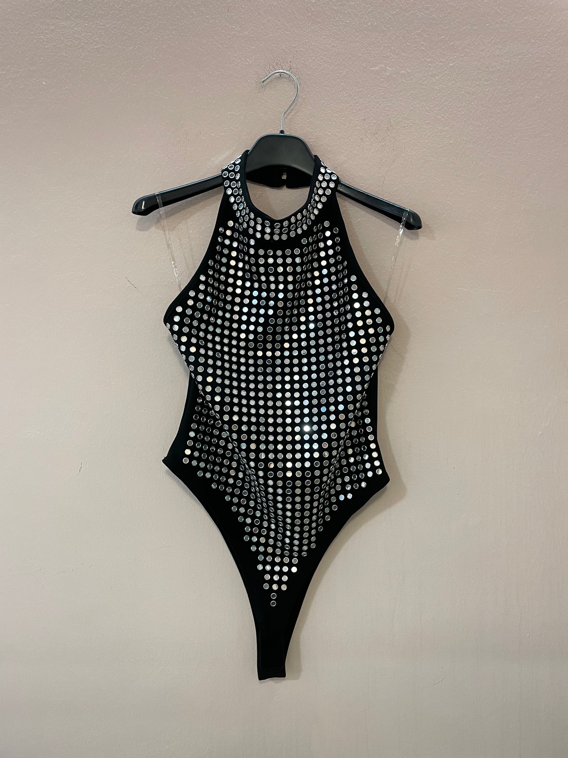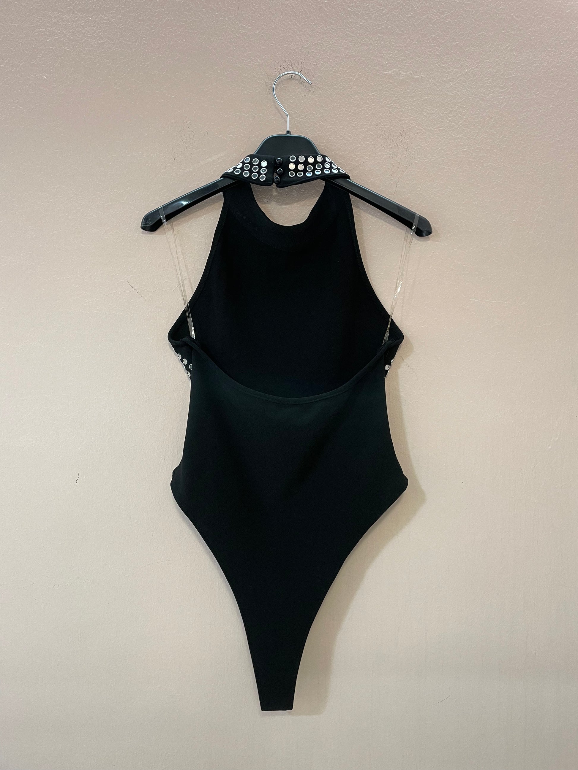 Body con borchie e chiusura sulla nuca, elasticizzato