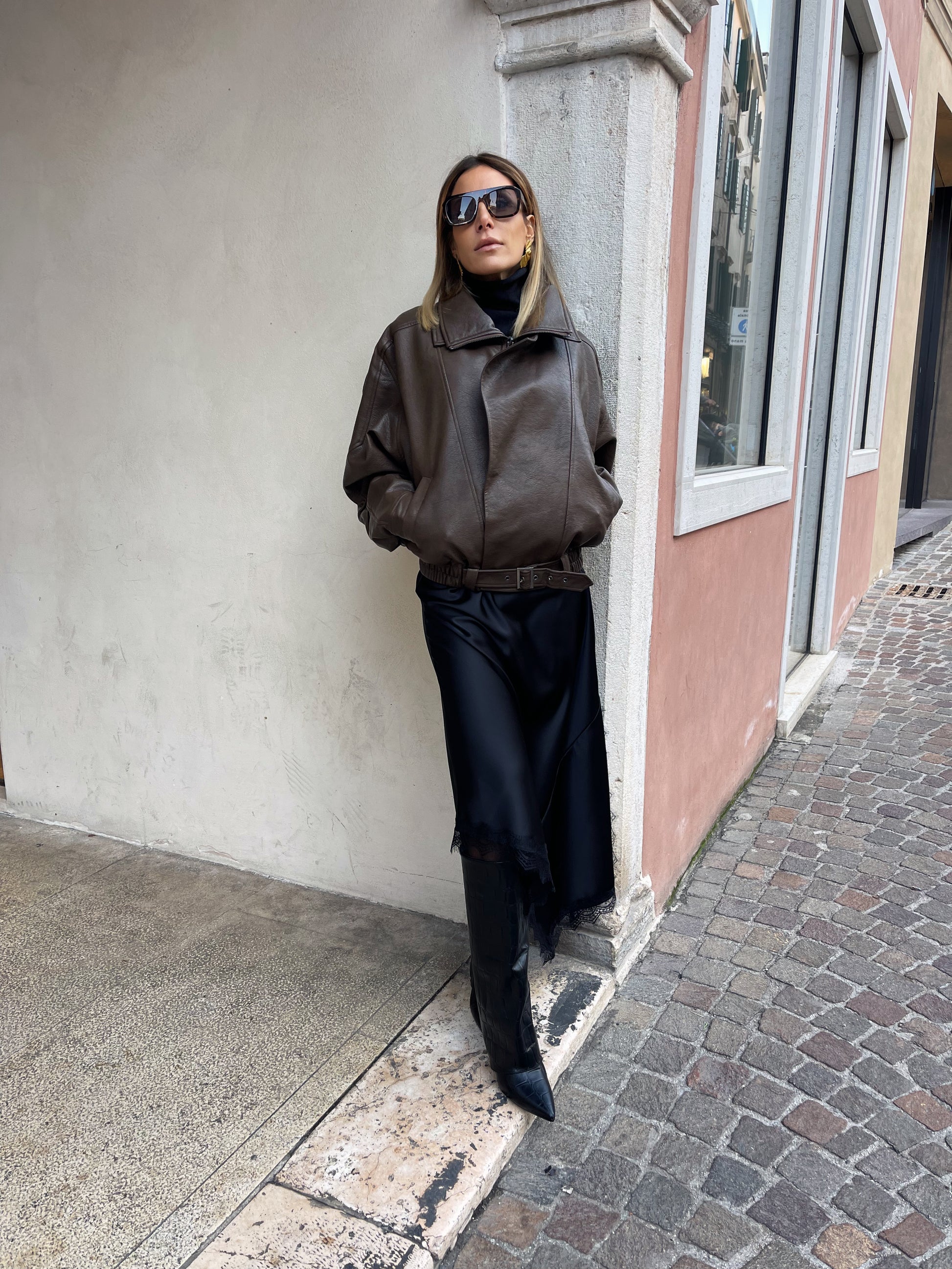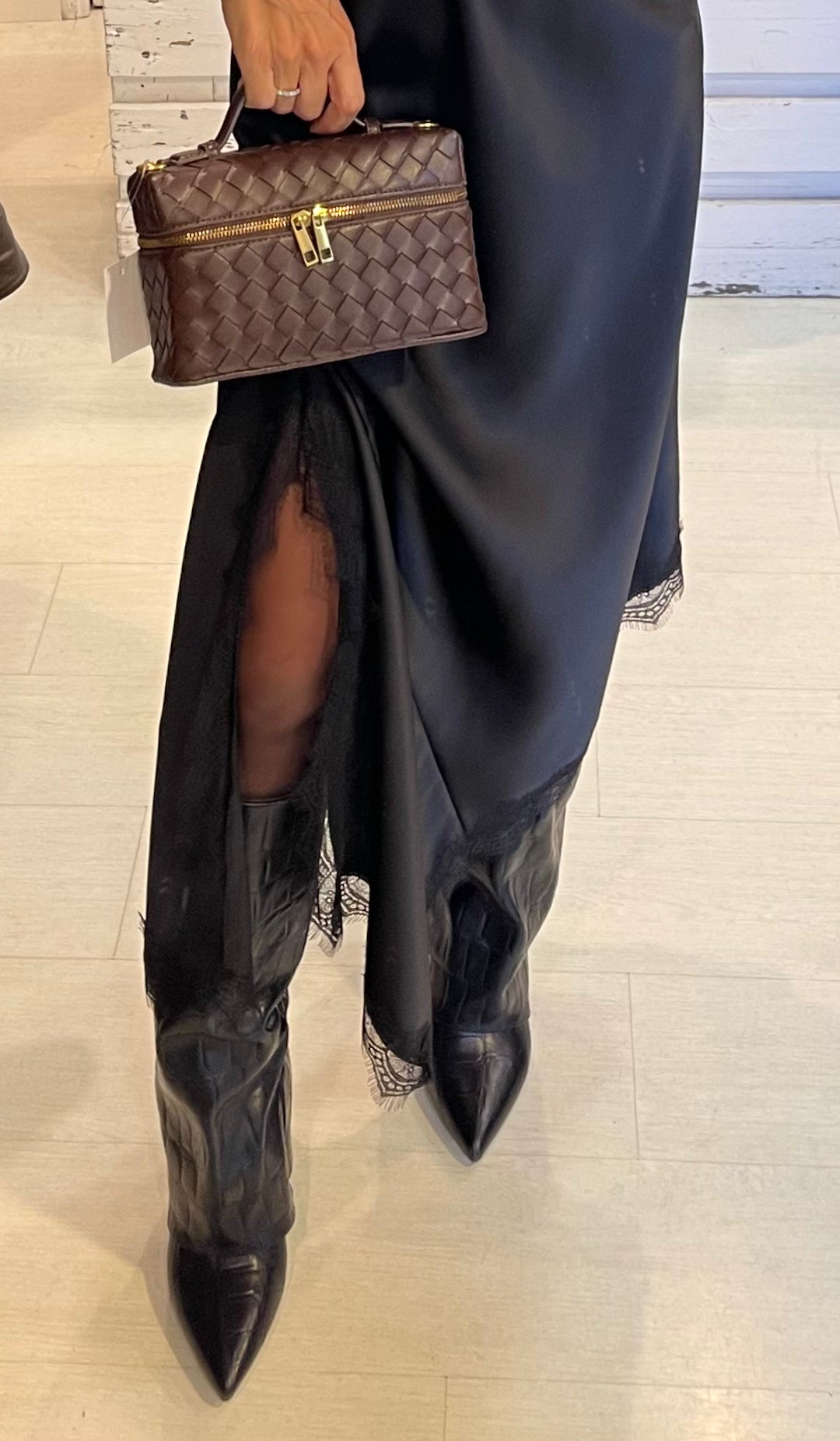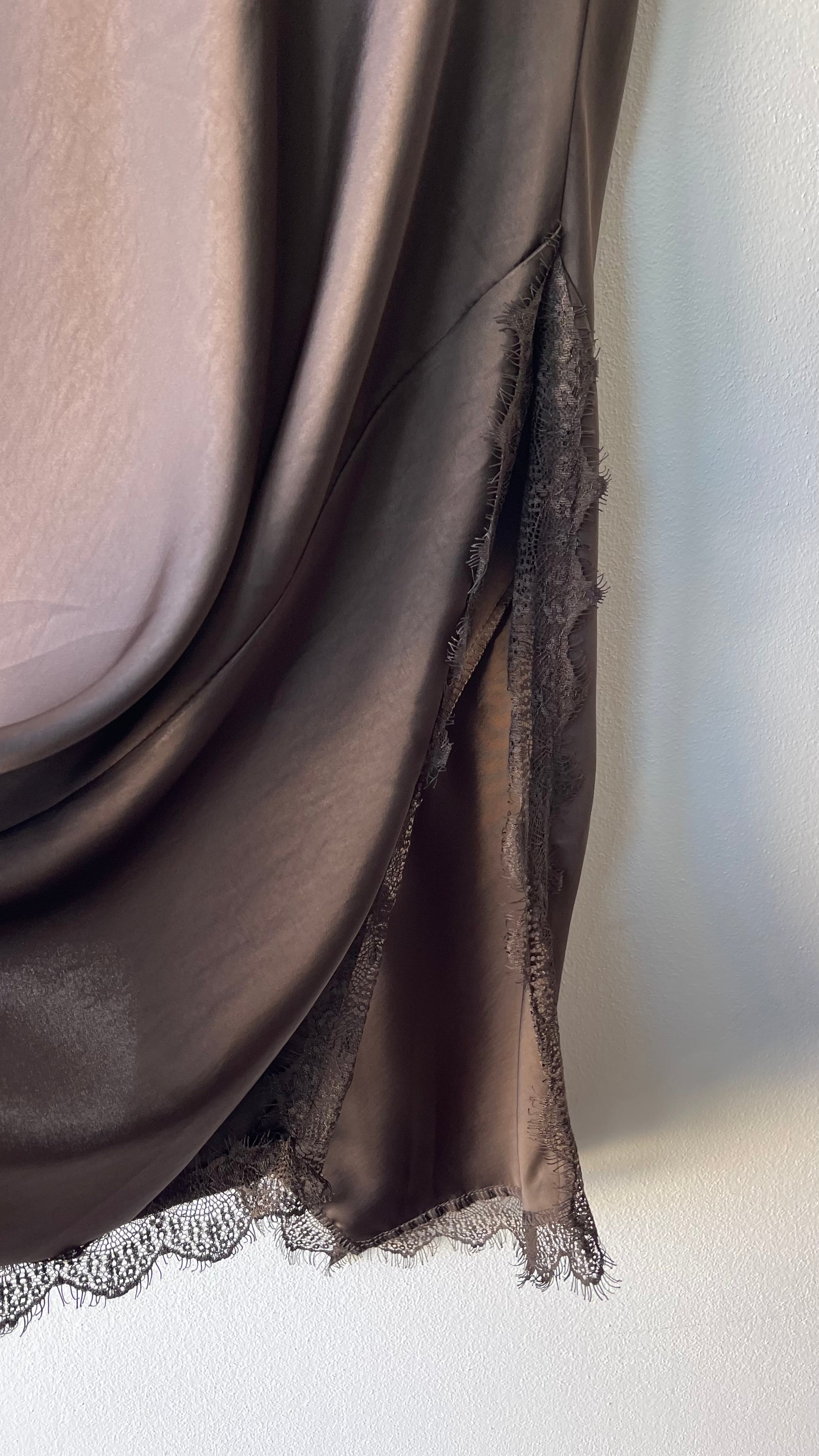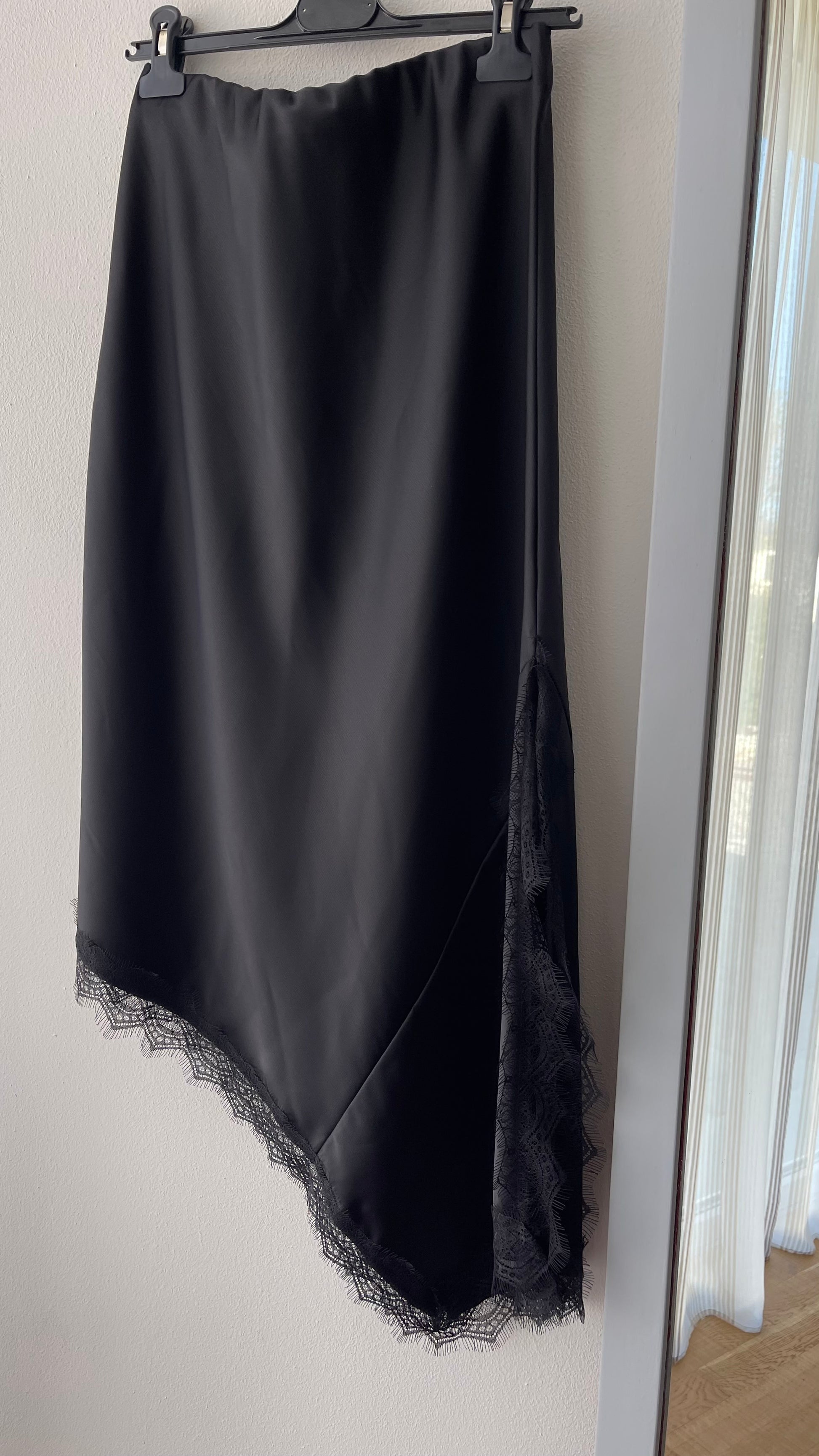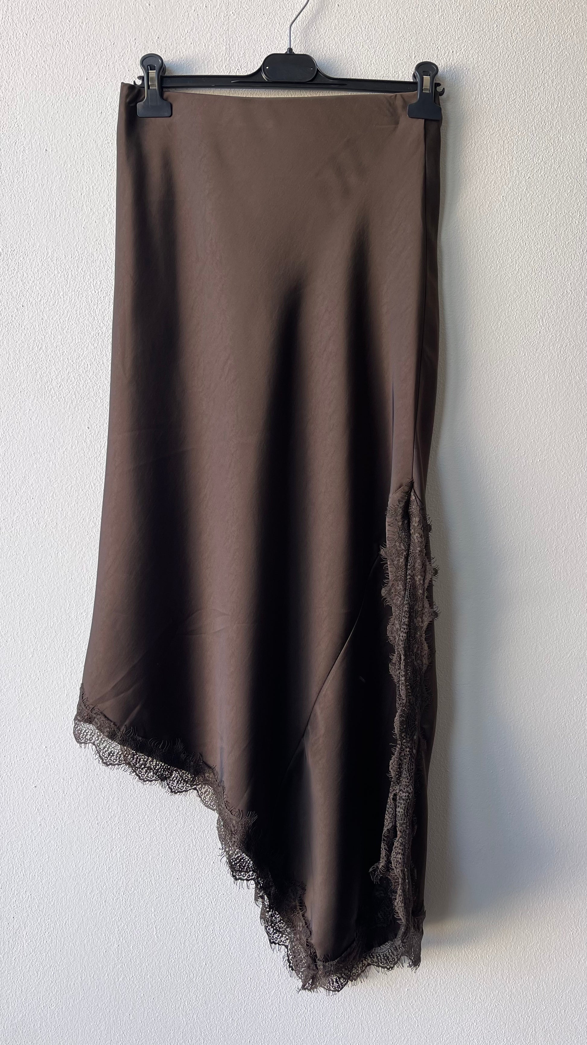 Gonna satin pizzo taglia unica elastico in vita taglio fondo obliquo con spacco lato sinistro