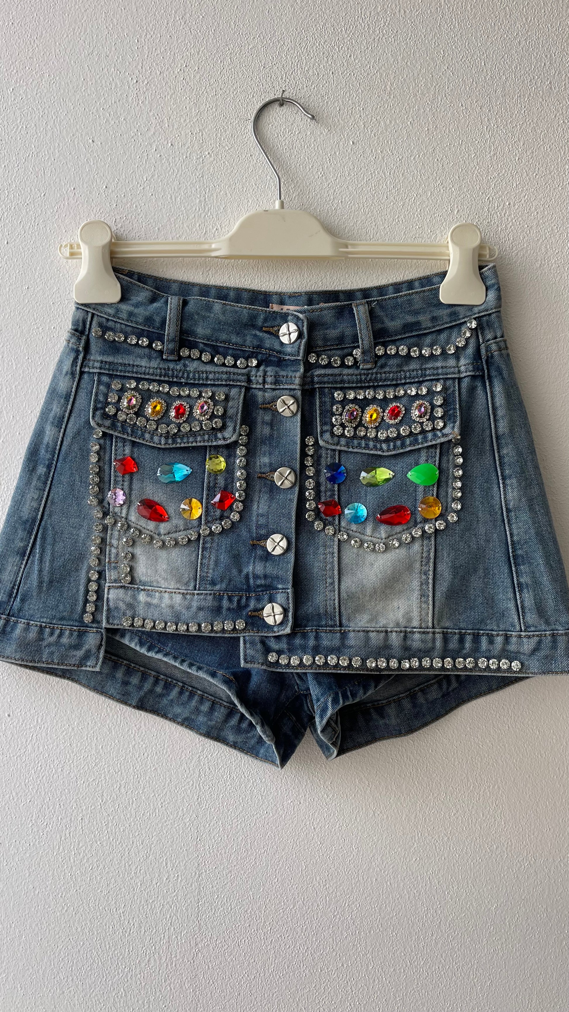 Shorts con bottoni sulla parte davanti ed applicazioni