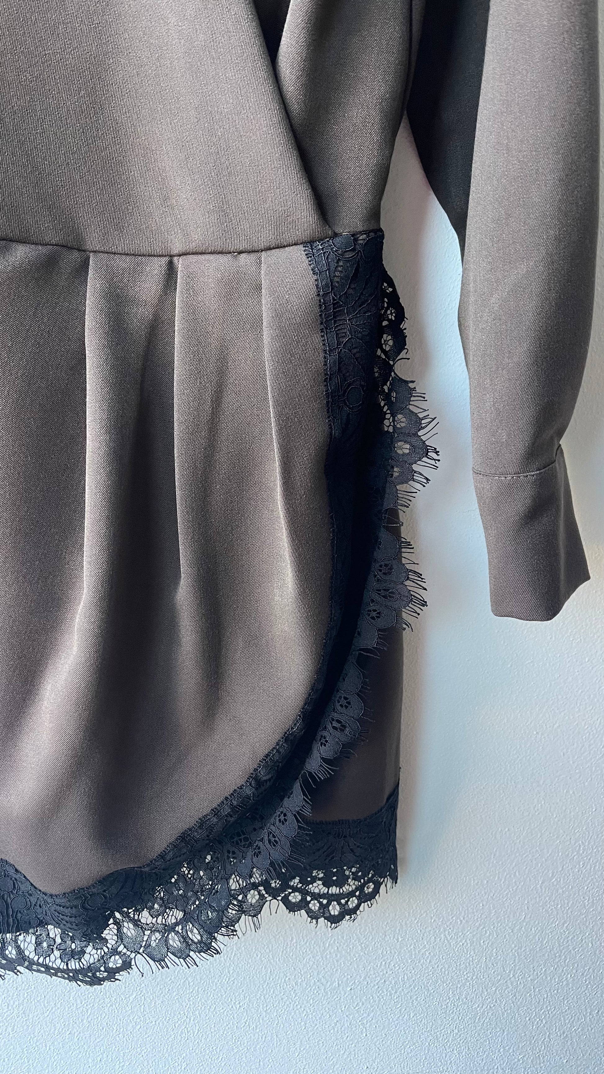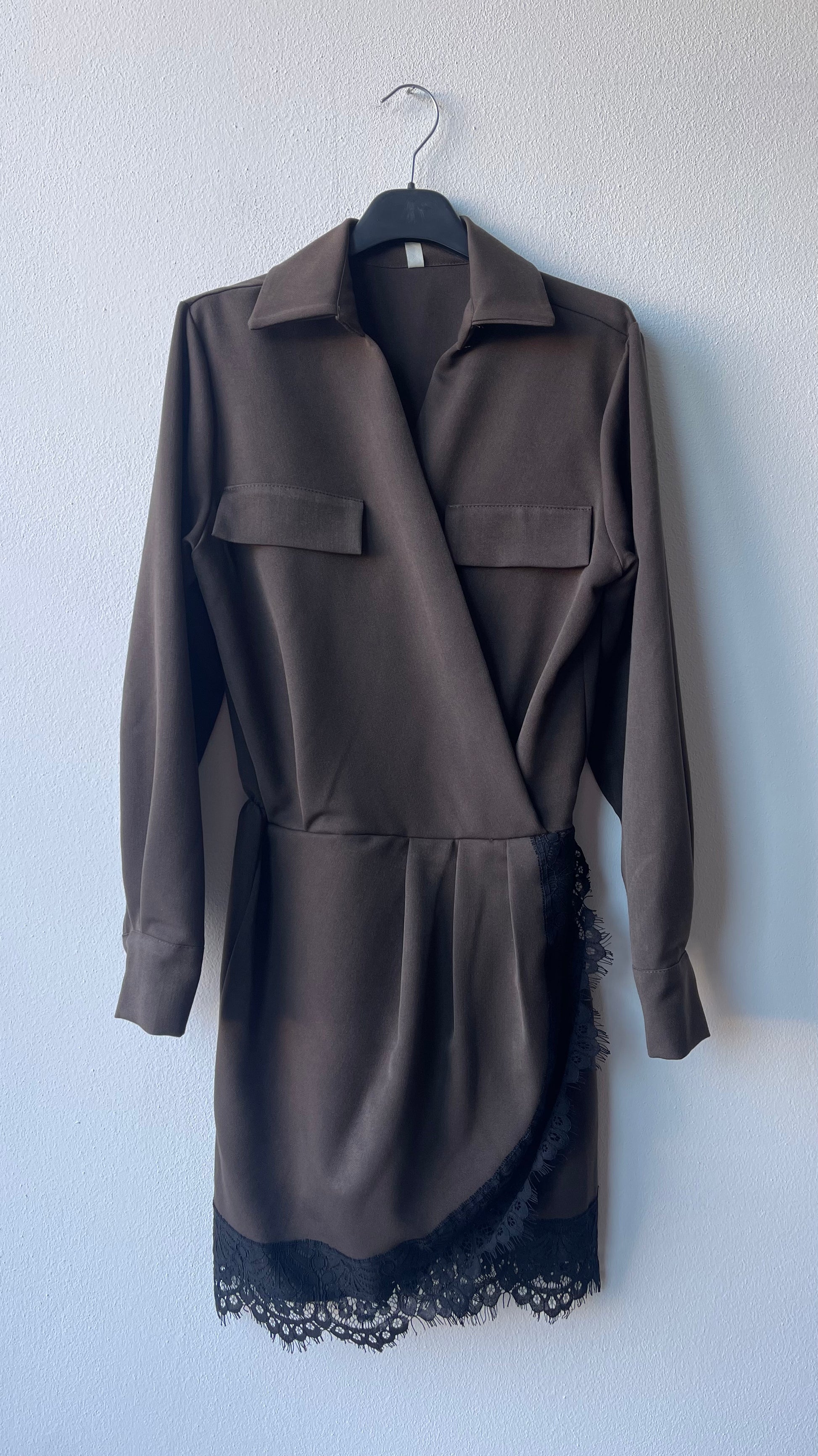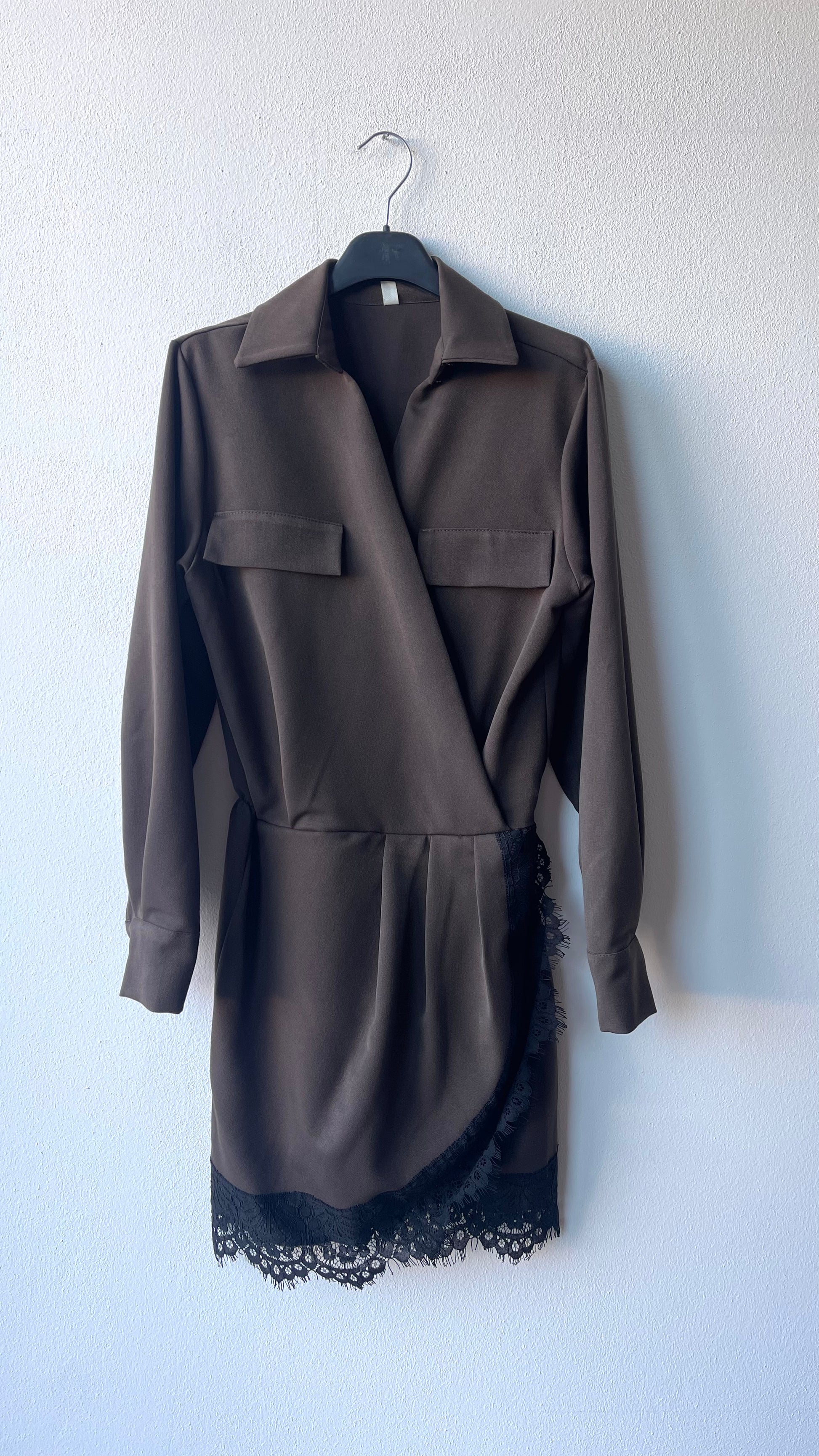 Abito chemisier taglia unica tagliato a camicia con gonna a portafoglio ed elastico nella parte dietro in viscosa scollo sulla parte davanti con taschine decoro