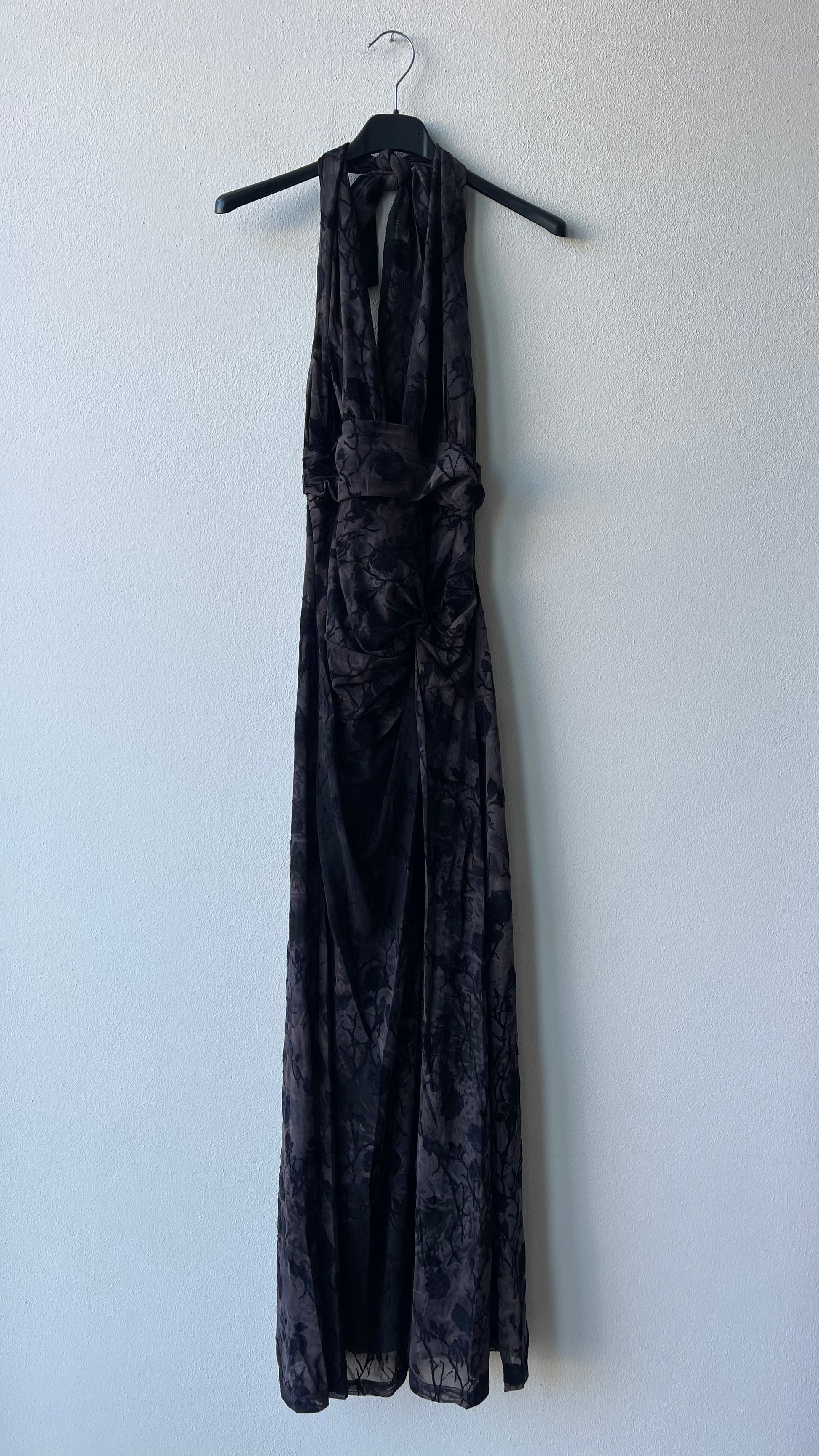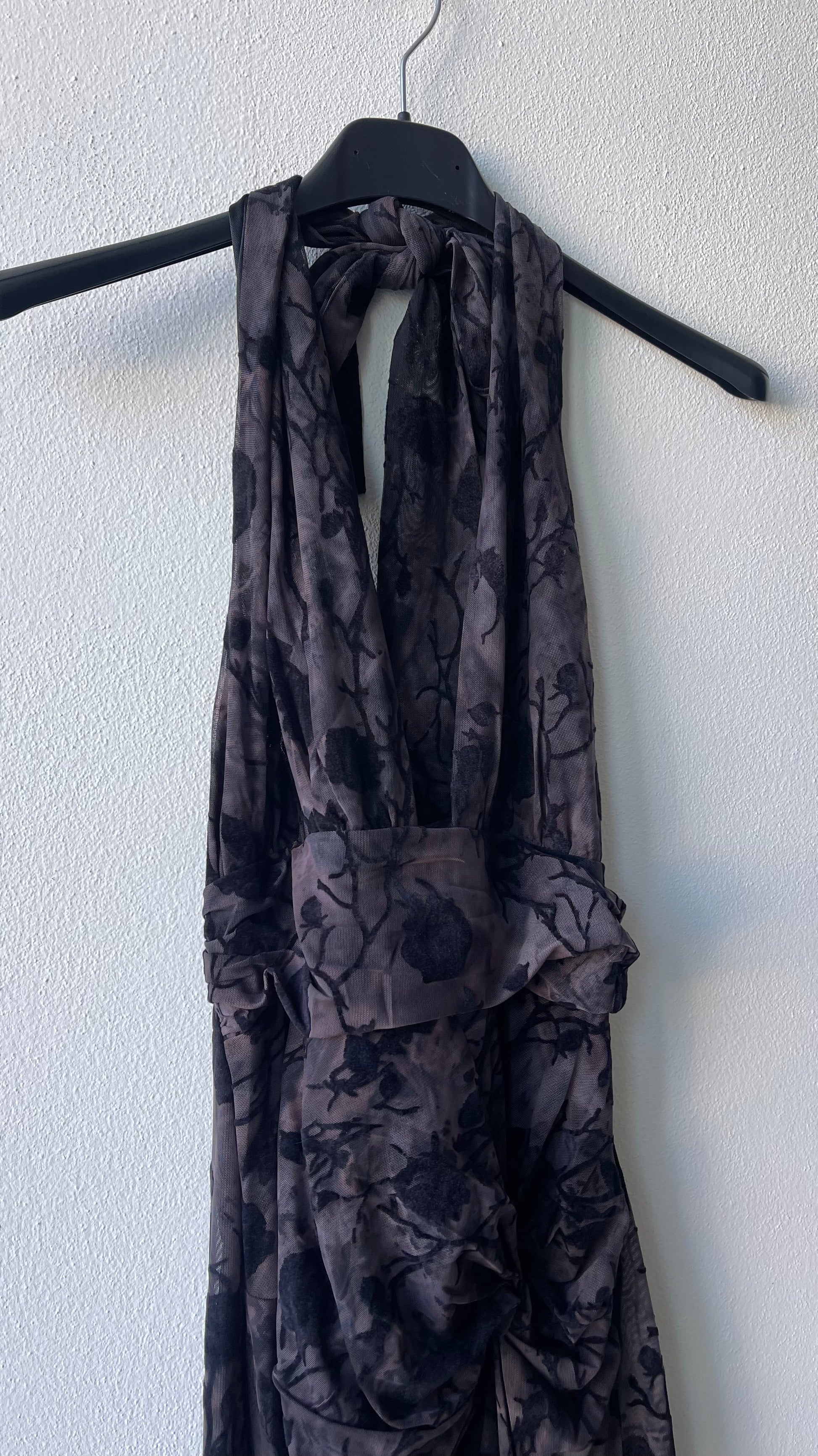 Abito in tessuto elasticizzato con dettagli ricamati in velluto
