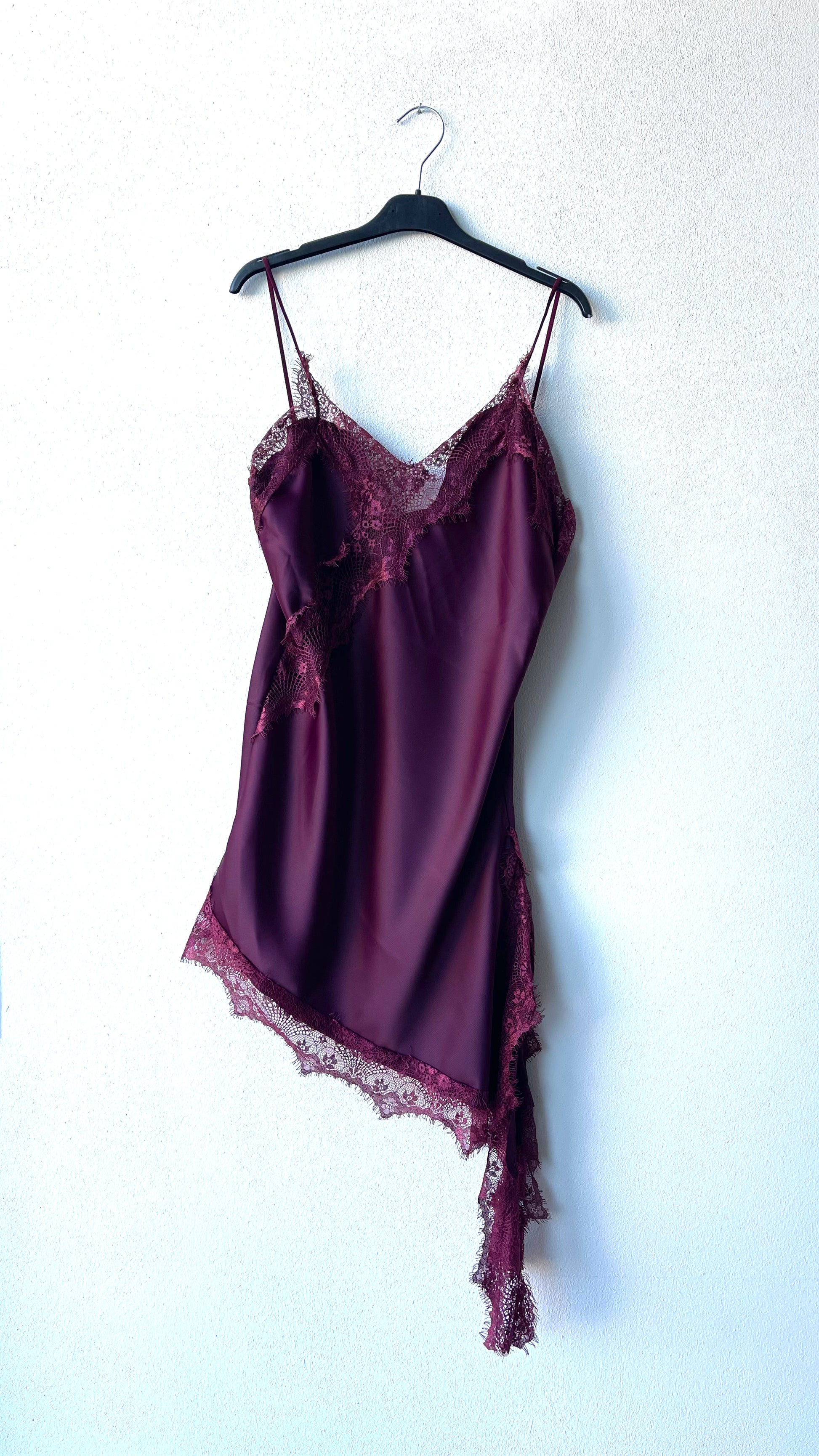 Abito sottoveste taglio obliquo in satin con inserto in pizzo taglia unica spallina elasticizzata