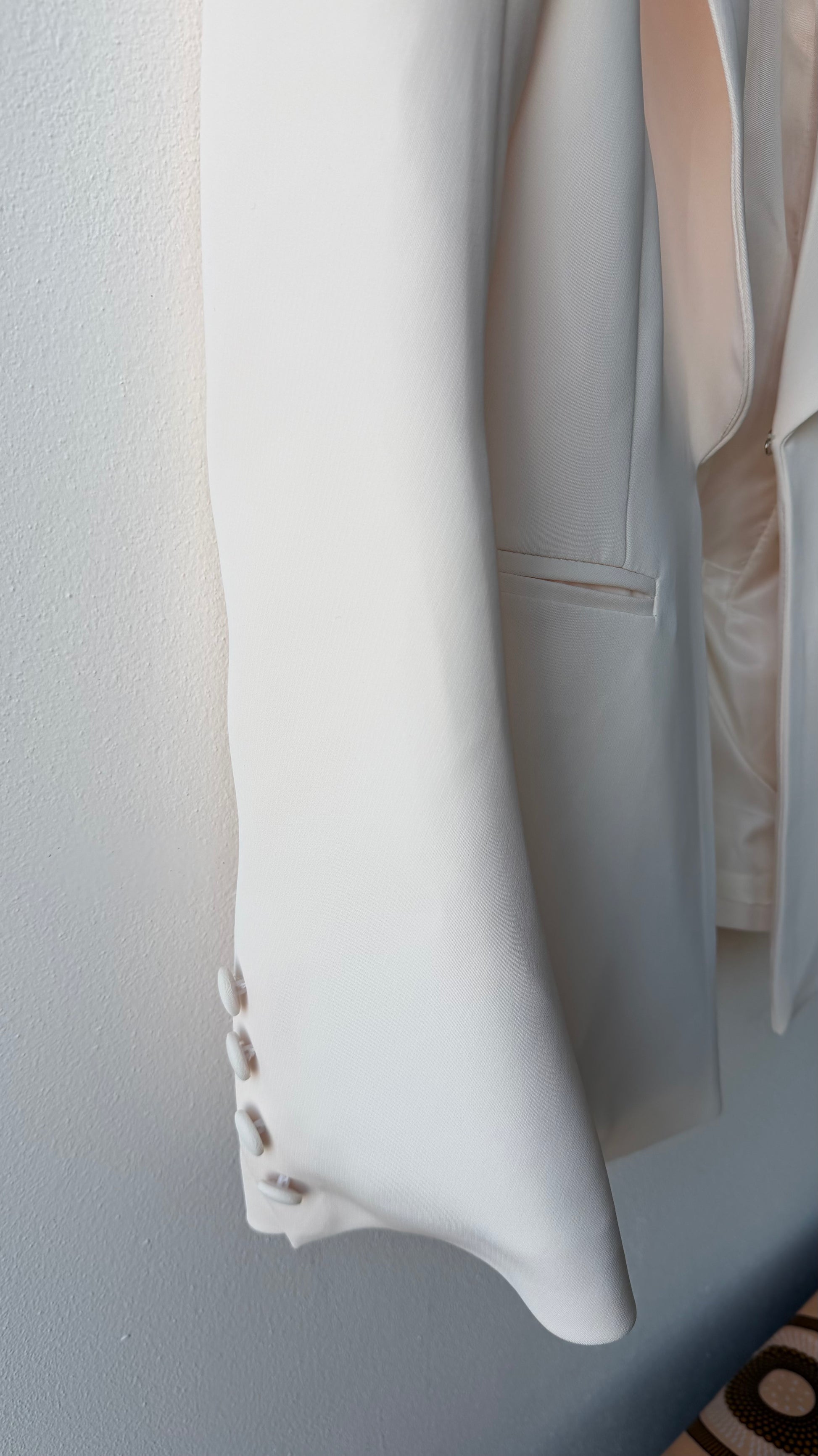 Blazer collo a lancia un solo bottone di chiusura e manica svasata sul fondo spalline rinforzate