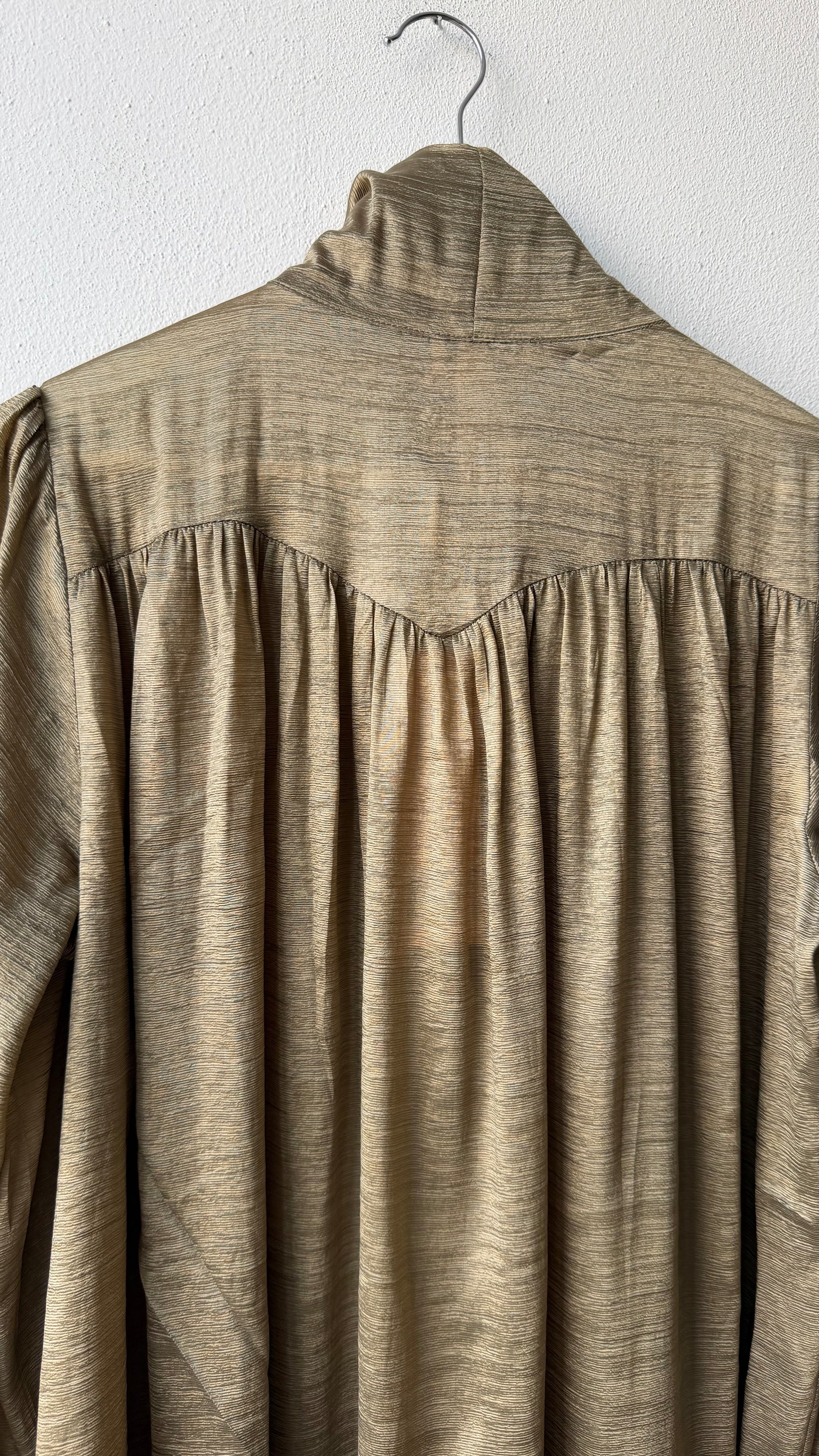 Camicia in tessuto laminato con sciarpina e dettaglio cucitura a v nella parte dietro vestibilita morbida effetto seta