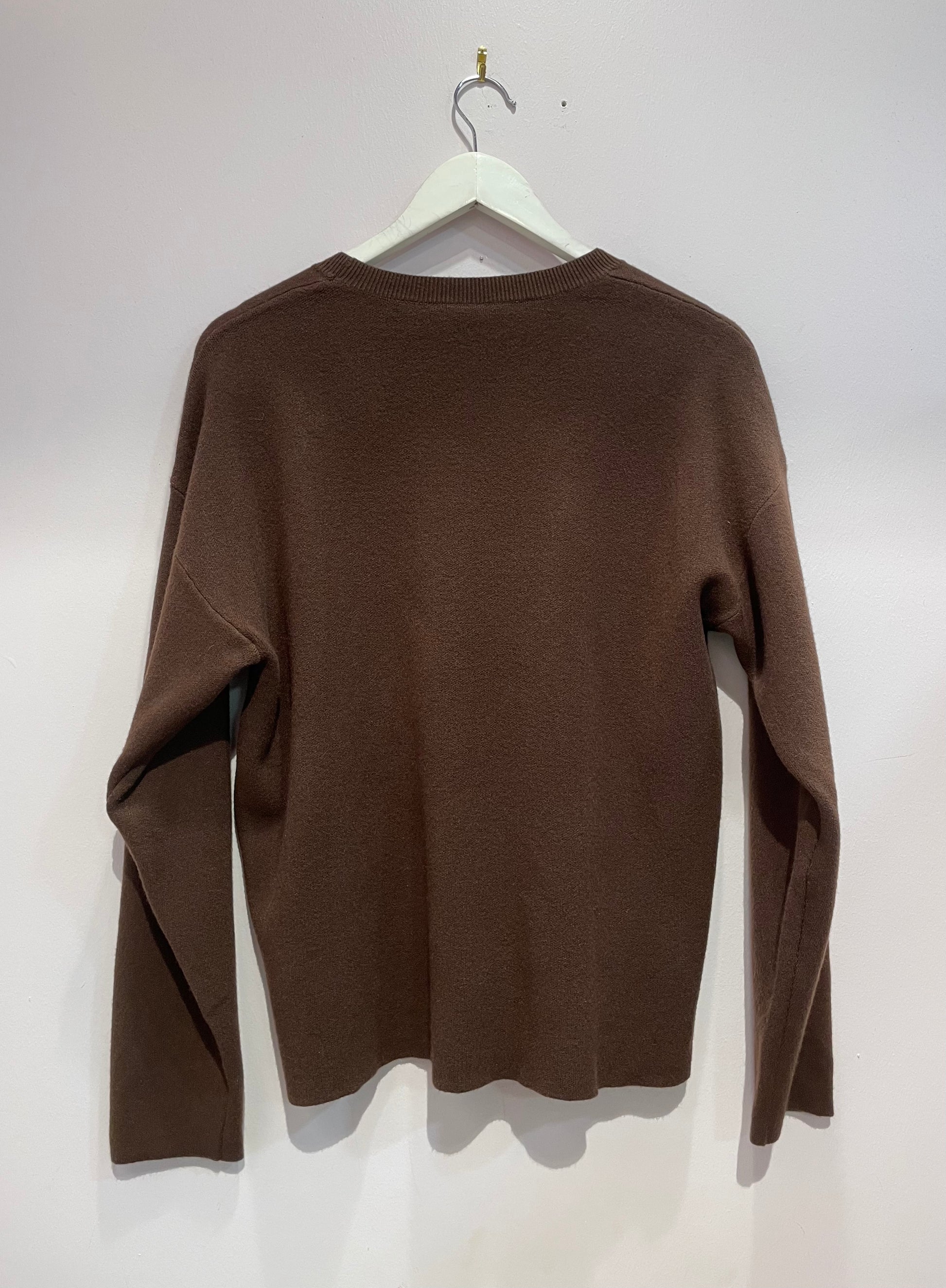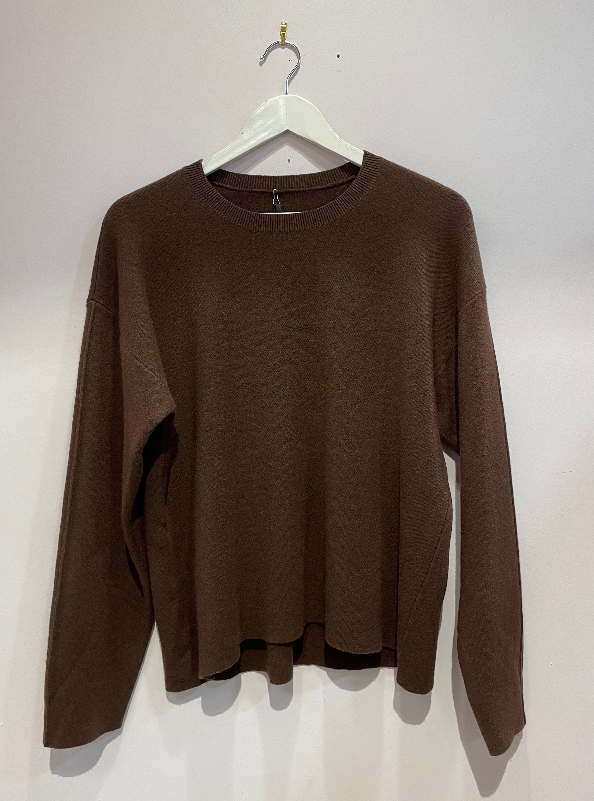Completo composto da maglia girocollo e pantalone con cucitura frontale, taschino con bottone dorato e coulisse in vita
