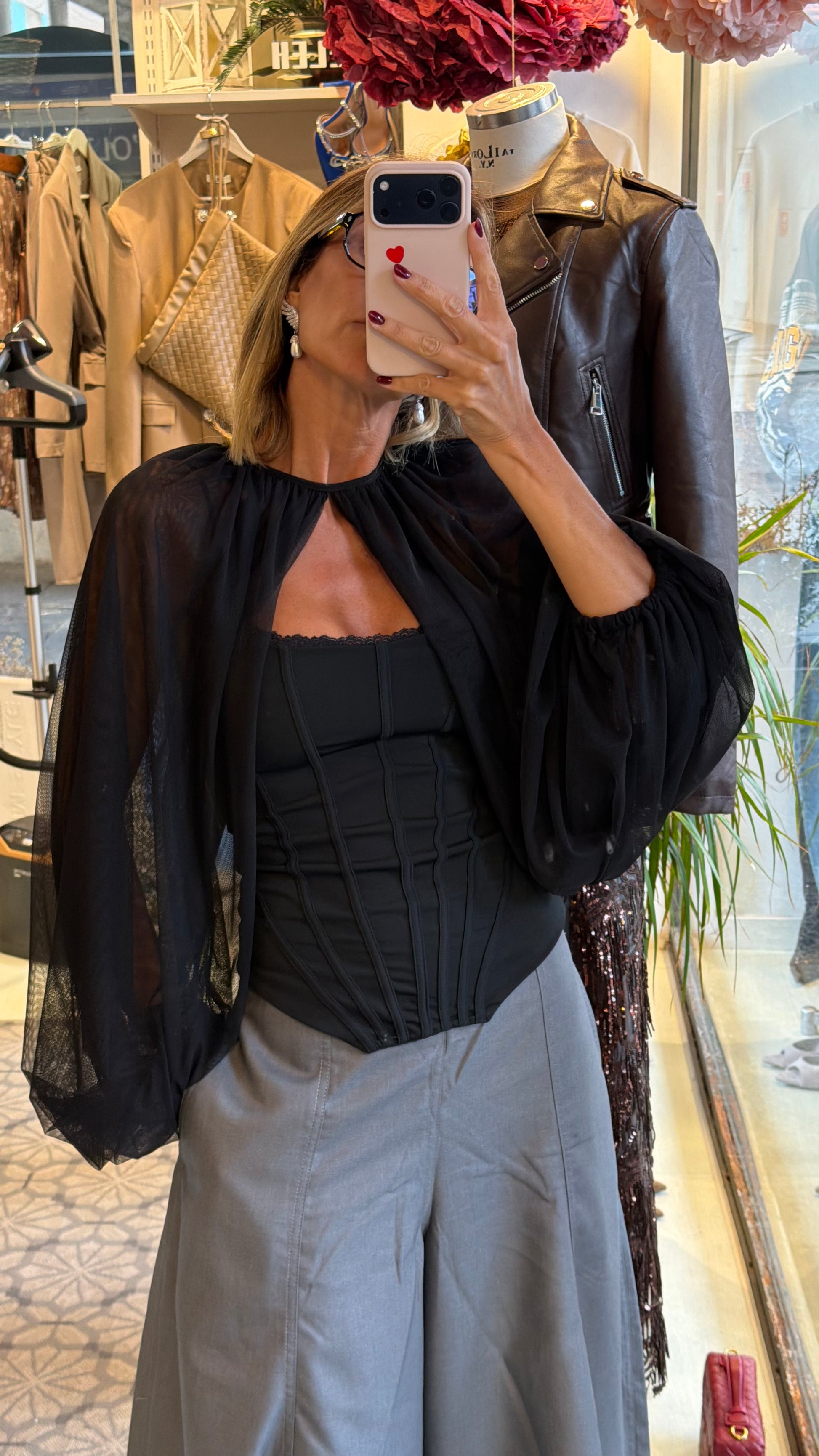 Copri spalla manica lanterna in tulle beige