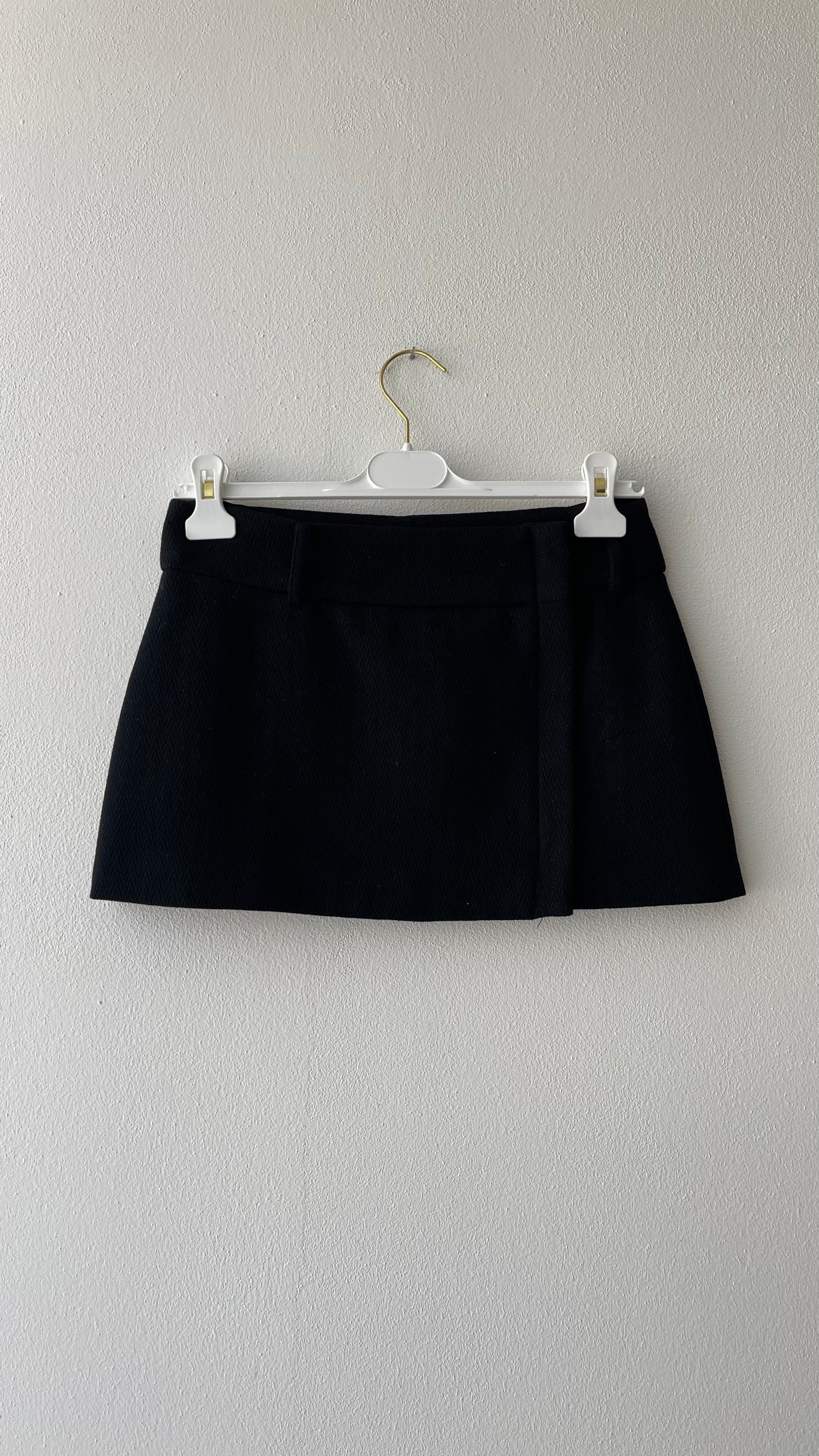 Minigonna con dettaglio zip laterale in tessuto misto lana spigato passante per la cintura possibilità di giacca coordinata