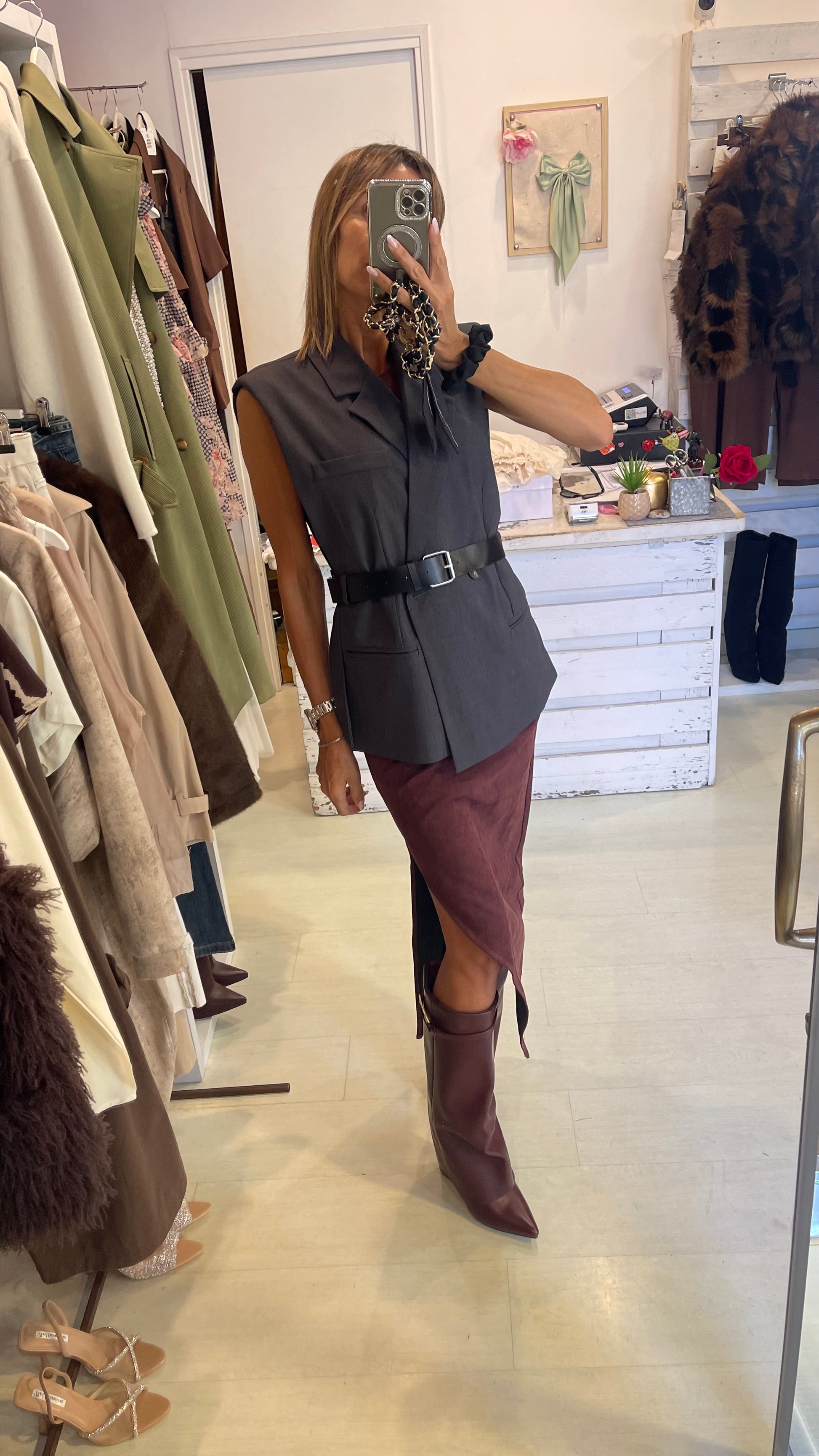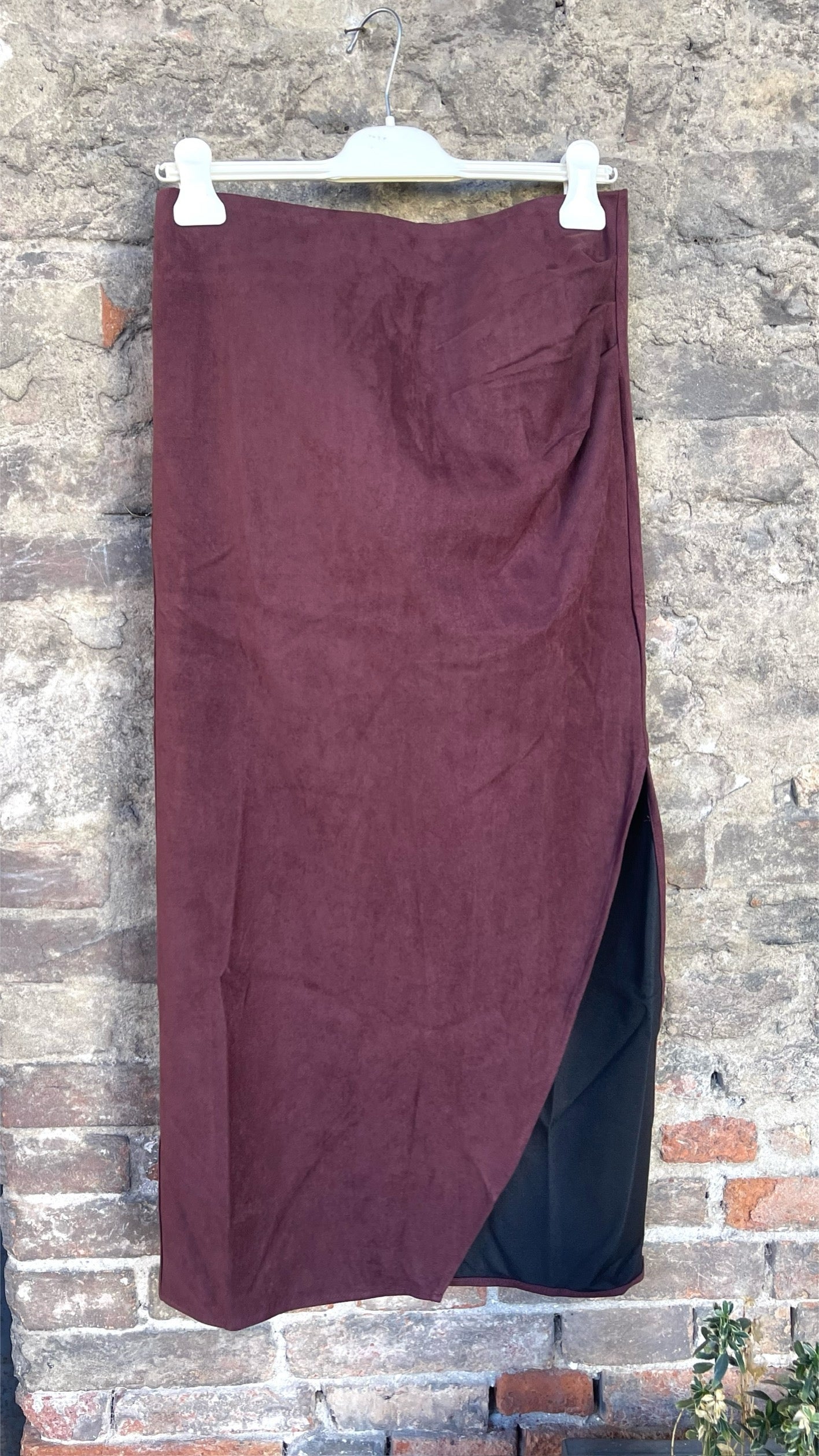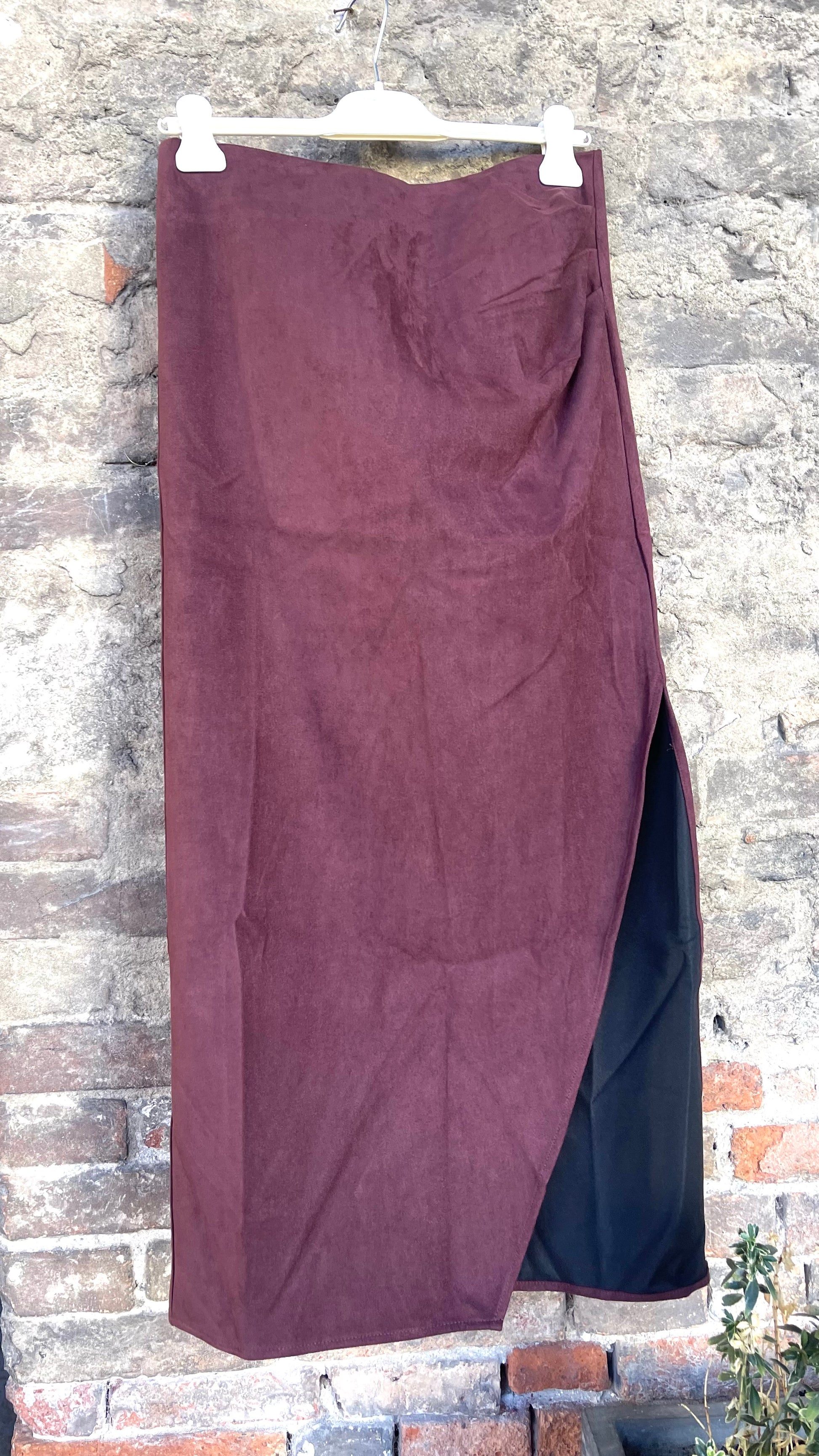 Gonna elasticizzata in eco suade con zip e spacco laterale