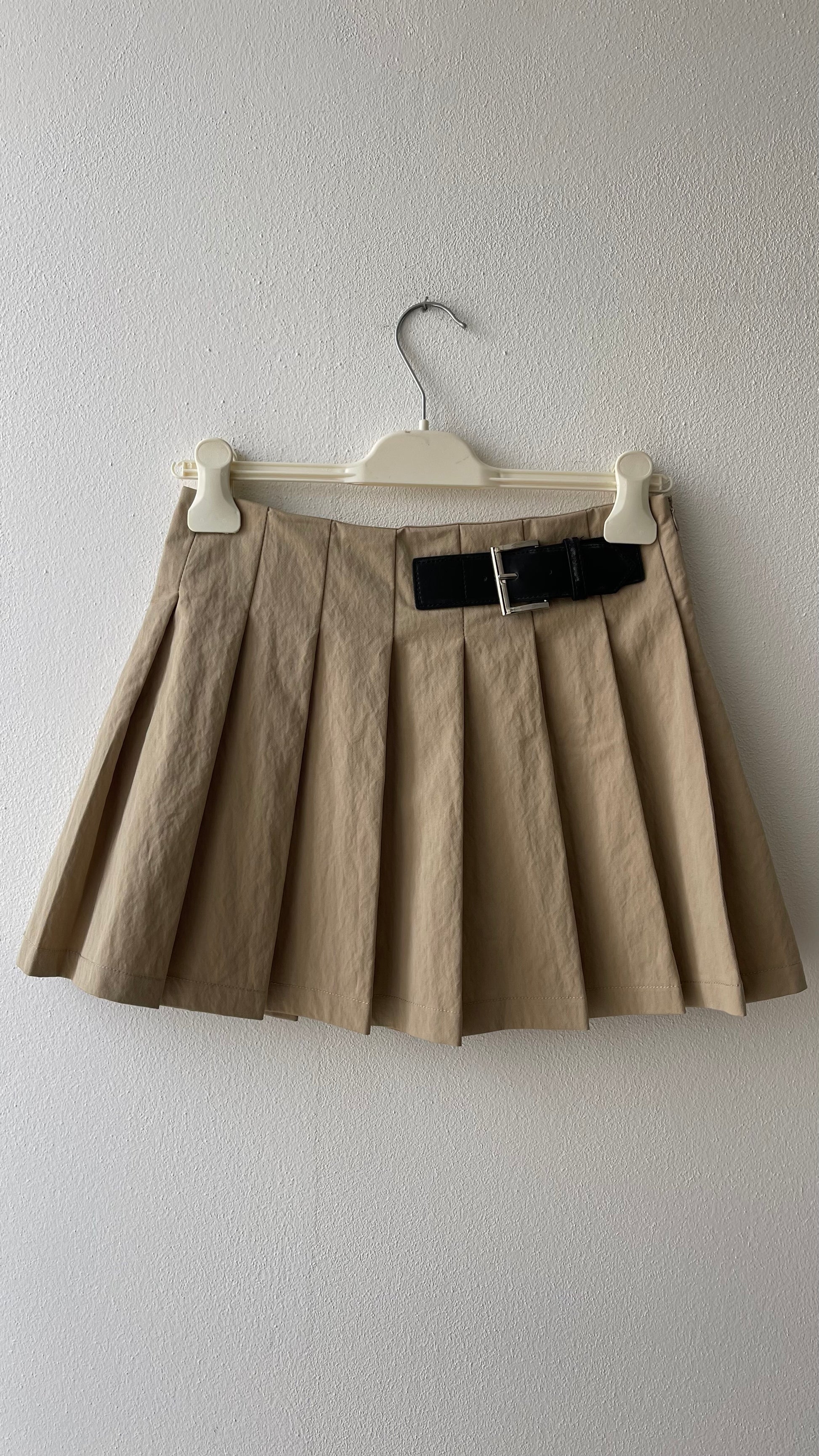Gonna plisse con shorts nella fodera e cinghia laterale di decoro