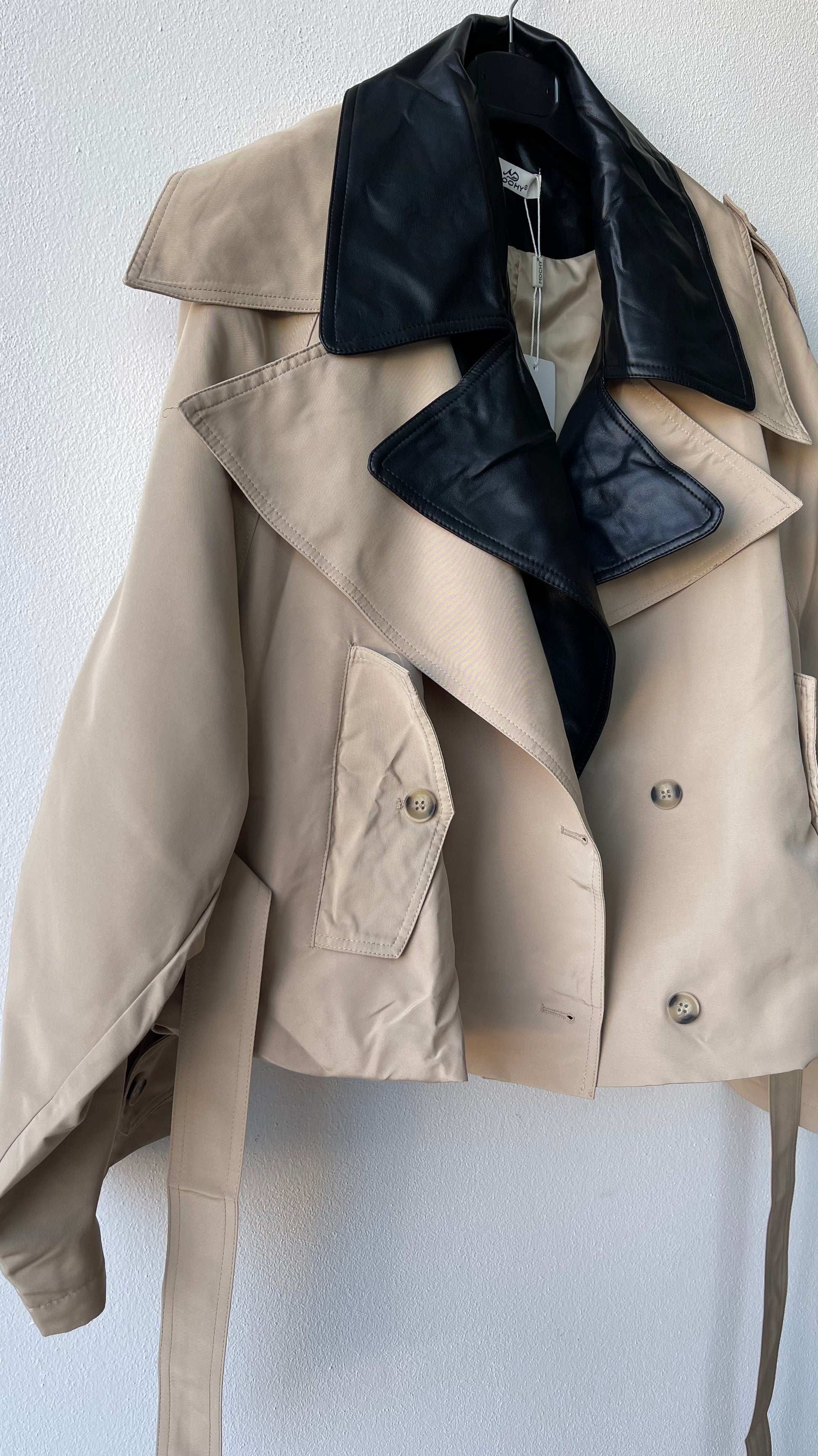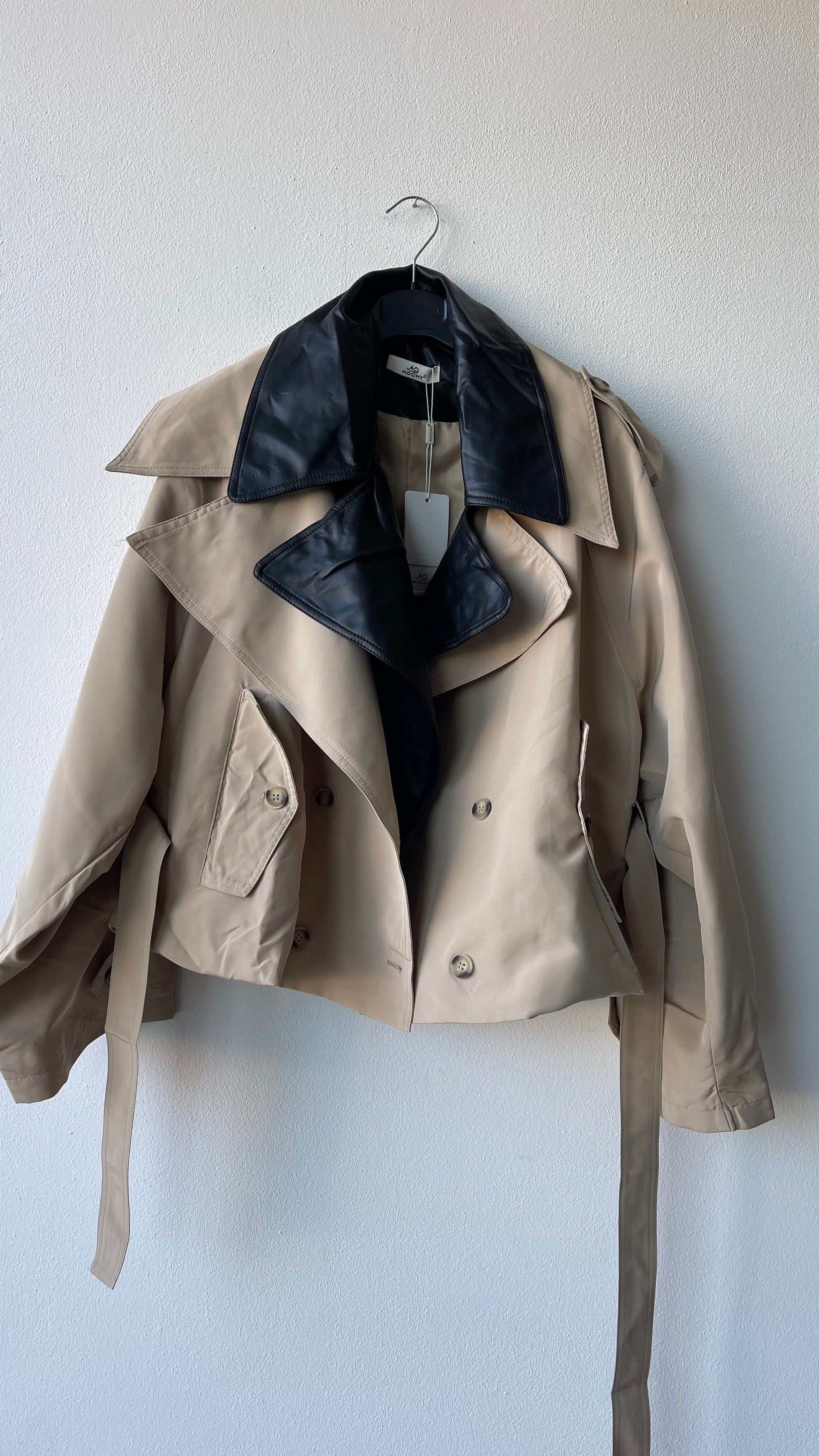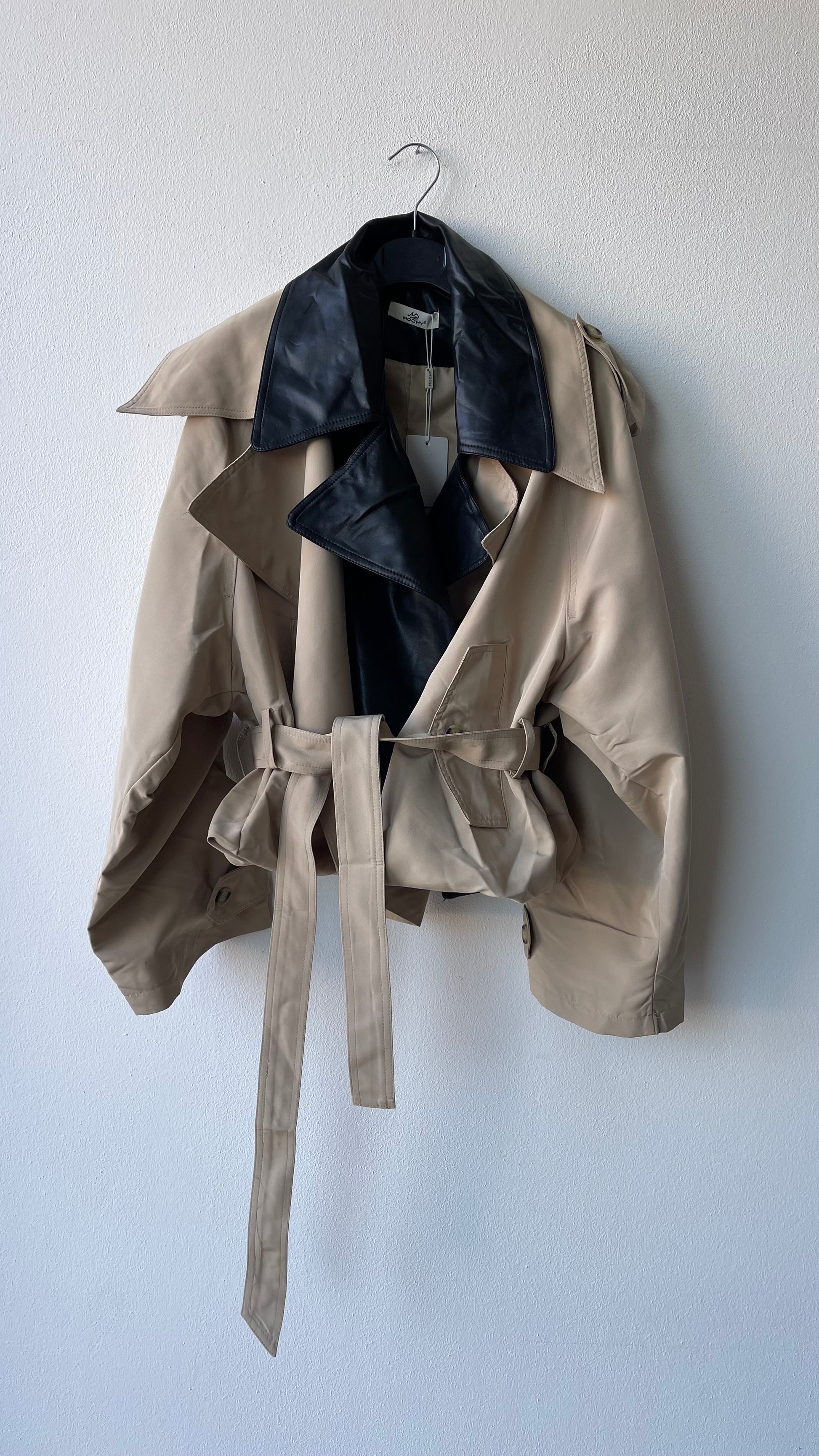 Trench taglia unica con dettaglio colletto ecopelle fondo arricciato e cintura